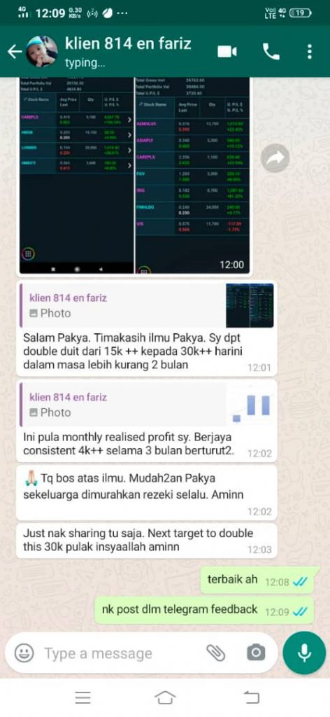 Screenshot past trades dan honest reviews dari klien2 boleh lihat di bawah