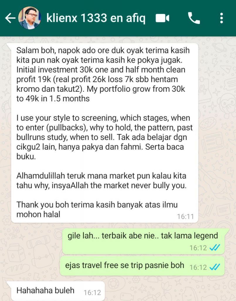 Gunakan apa yang saya ajar dan pengalaman saya trade lepas2 sebagai batu loncatan atau shortcut untuk you gain profits dalam saham.